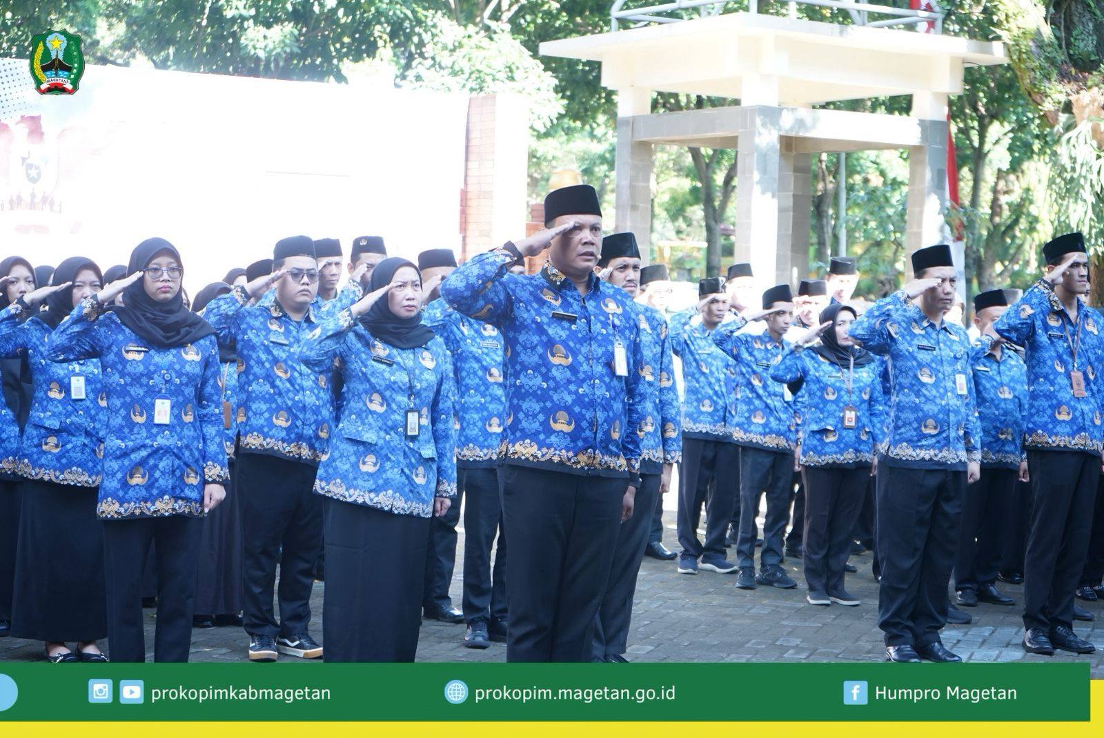 ASN di lingkup Sekretariat Daerah Kabupaten Magetan mengikuti upacara peringatan Hari Kesaktian Pancasila tahun 2025, bertempat di halaman Kantor Pemkab Magetan, pada Rabu (1/10/2025).