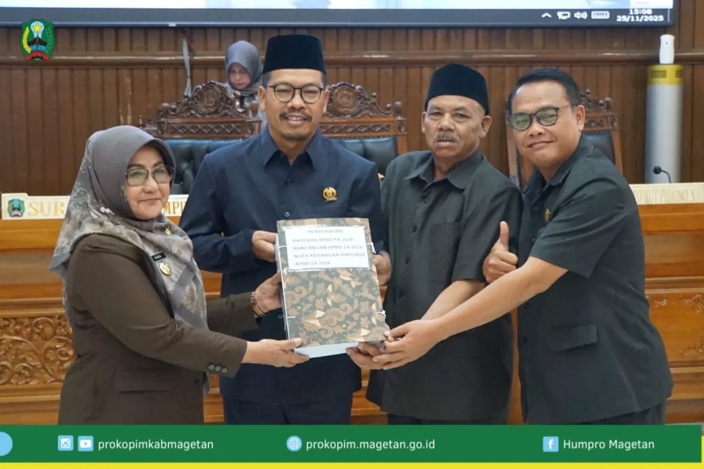 Penyampaian ini dilakukan pada agenda Penjelasan Bupati terhadap pengantar Nota Keuangan Rancangan Peraturan Daerah APBD Kabupaten Magetan Tahun Anggaran 2026, yang dilaksanakan pada Selasa (25/11/25).