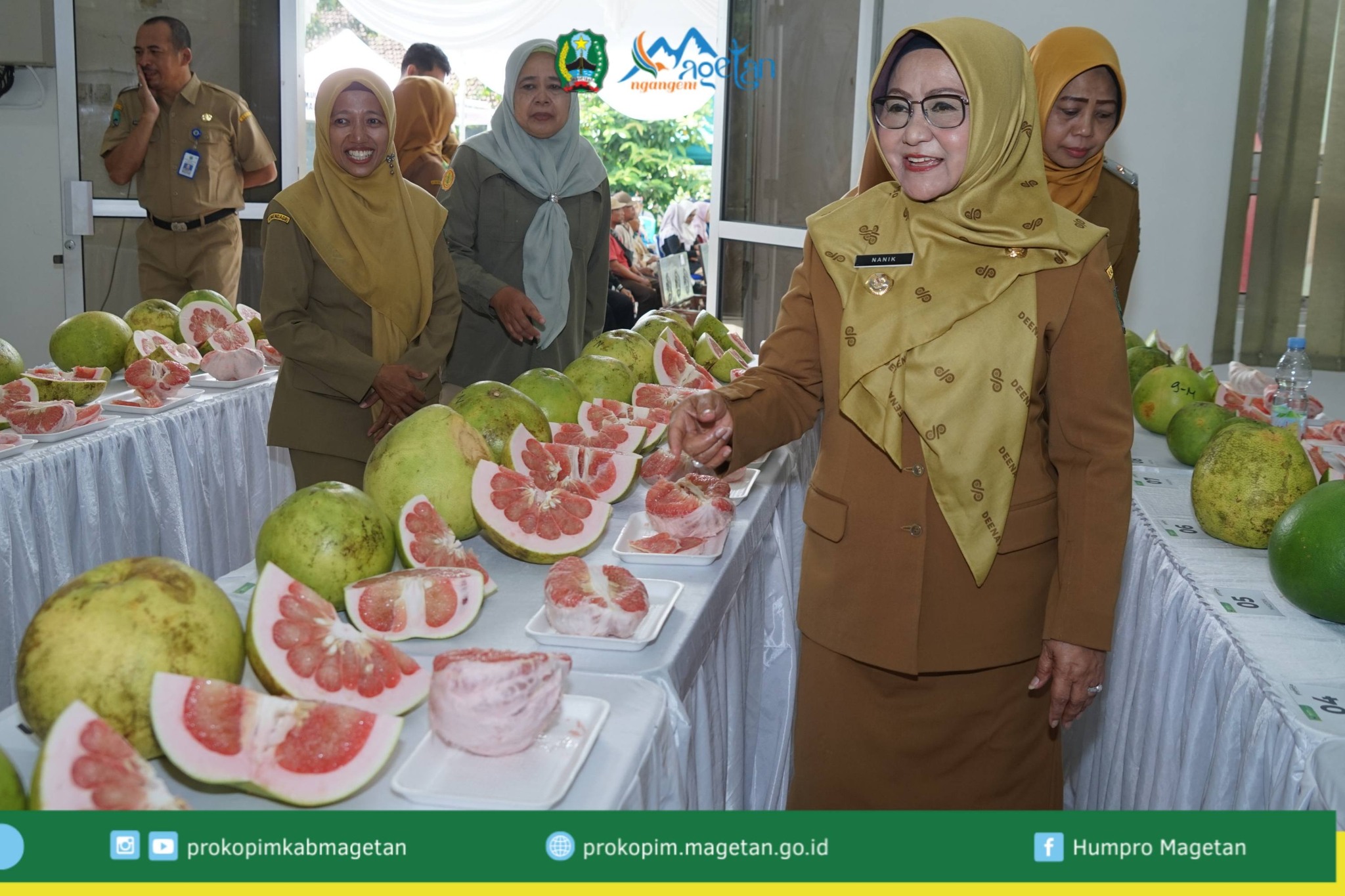 ” Magetan punya produk unggulan yaitu jeruk pamelo yang dikembangkan di 6 kecamatan (BETASUKAMANGU), Bendo – Takeran – Sukomoro – Magetan – Nguntoronadi. Festival Pamelo ini menjadi momentum untuk memperkuat promosi buah unggulan daerah agar semakin dikenal luas hingga menembus pasar nasional maupun internasional,” imbuhnya.