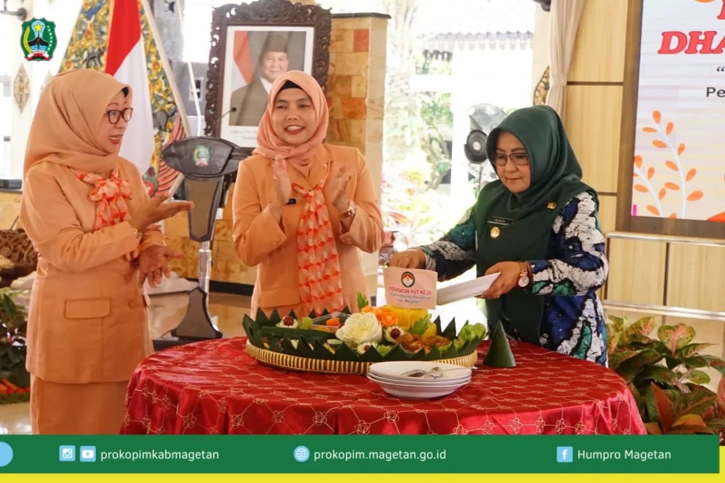 Dharma Wanita Persatuan (DWP) Kabupaten Magetan hari ini menggelar Peringatan Hari Ulang Tahun (HUT) ke-26 dengan mengusung tema yang visioner dan strategis: “Peran Strategis Dharma Wanita Persatuan dalam Pendidikan Anak Bangsa Menuju Indonesia Emas 2045.” Acara puncak peringatan ini berlangsung khidmat di Pendapa Surya Graha, Jumat (12/12/2025).