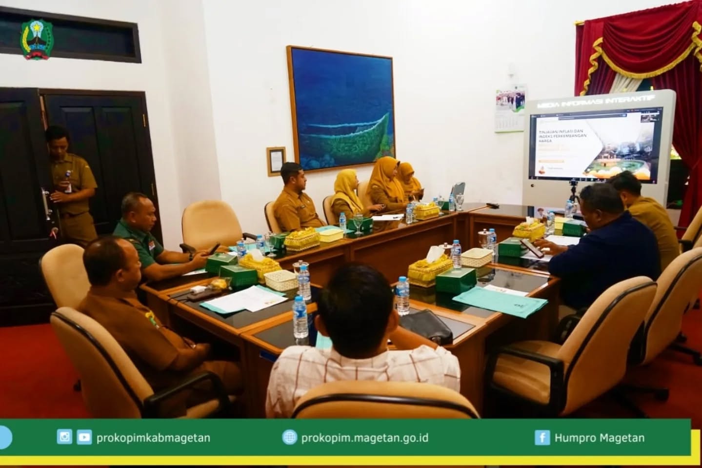 Kementerian Dalam Negeri (Kemendagri) kembali menggelar Rapat Koordinasi Pengendalian Inflasi Daerah secara virtual pada Selasa (2/12). Pemerintah Kabupaten Magetan mengikuti acara tersebut dari Ruang Jamuan Pendapa Surya Graha.