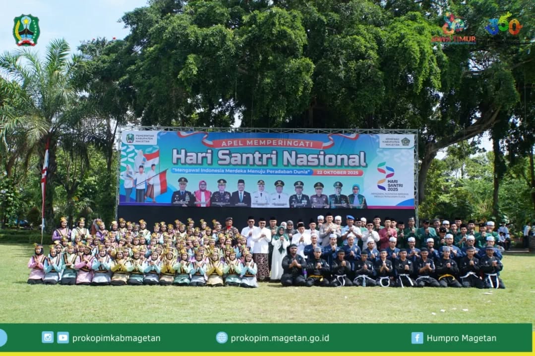 Bupati Magetan, Bunda Nanik memimpin upacara peringatan Hari Santri Nasional Tahun 2025 yang digelar di Alun-alun Magetan, Rabu (22/10). Peringatan Hari Santri tahun ini mengusung tema,