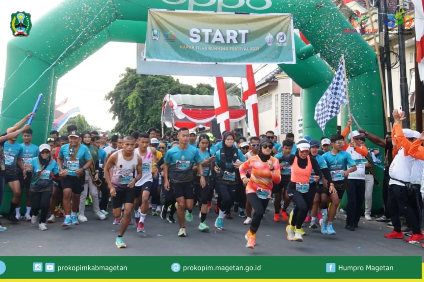 Ratusan pelari dari berbagai kalangan, mulai dari generasi X, milenial, hingga generasi Z, tumpah ruah memenuhi ruas jalan Parang hingga kota Magetan dalam ajang Napak Tilas Running Festival (NTRF) 2025, yang diberangkatkan oleh Wakil Bupati, Sabtu (18/10/2025).