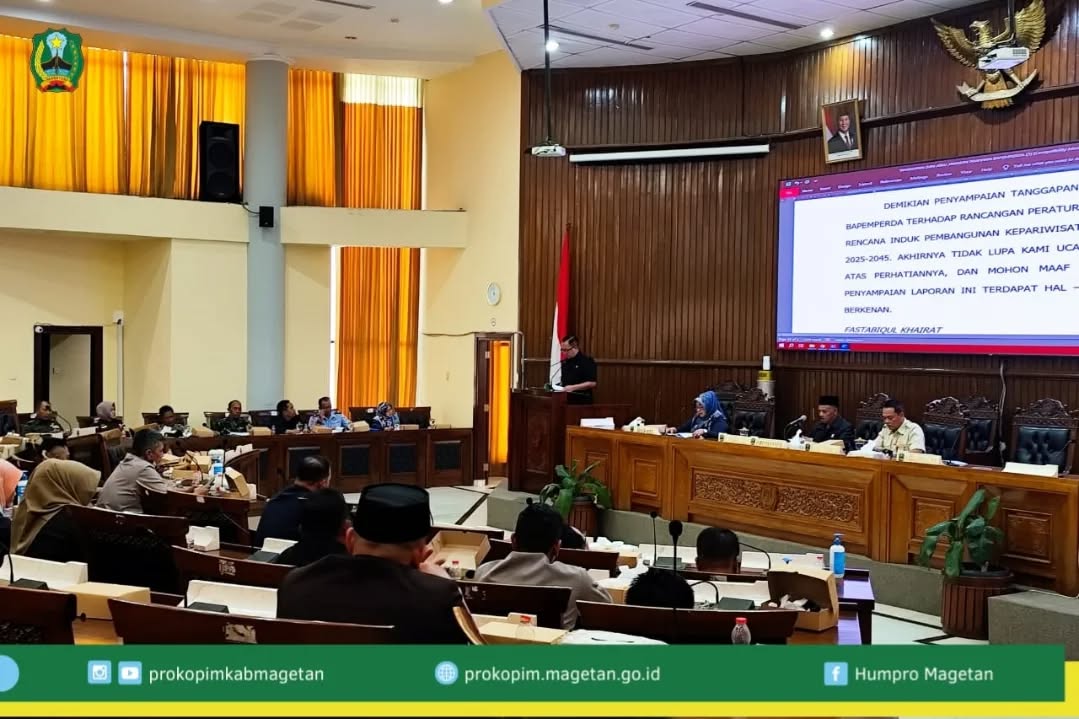 Dewan Perwakilan Rakyat Daerah (DPRD) Kabupaten Magetan menggelar rapat paripurna di ruang rapat paripurna DPRD, Kamis (18/12/2025). Agenda utama rapat kali ini adalah salah satunya penyampaian Tanggapan dan Jawaban Bupati Magetan terhadap Pemandangan Umum Fraksi-fraksi DPRD mengenai Raperda Perubahan atas Perda Nomor 1 Tahun 2021 tentang Pengelolaan Barang Milik Daerah (BMD).