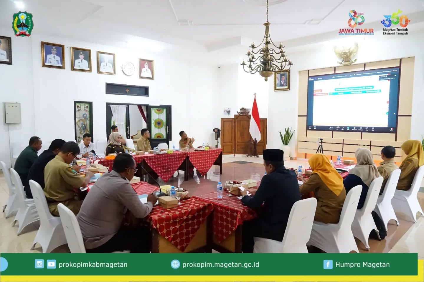Kegiatan yang dilaksanakan secara hybrid di Ruang Jamuan Pendopo Surya Graha tersebut diikuti oleh Pj. Sekda Magetan bersama perwakilan Forkopimda dan undangan lainnya.