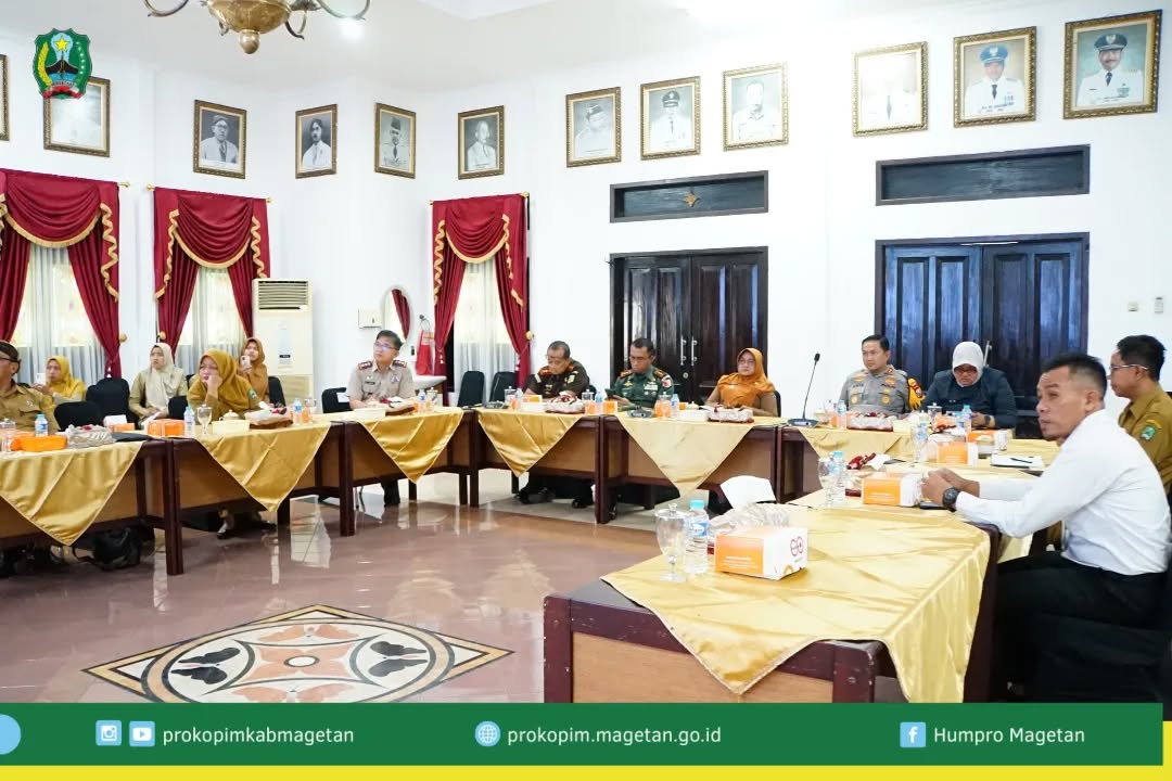 Sementara itu Kabupaten Magetan, Bupati bersama Forkopimda, Kepala Kantor BPN/ATR, dan OPD terkait mengikuti Rakor dari Ruang Jamuan Pendapa Surya.