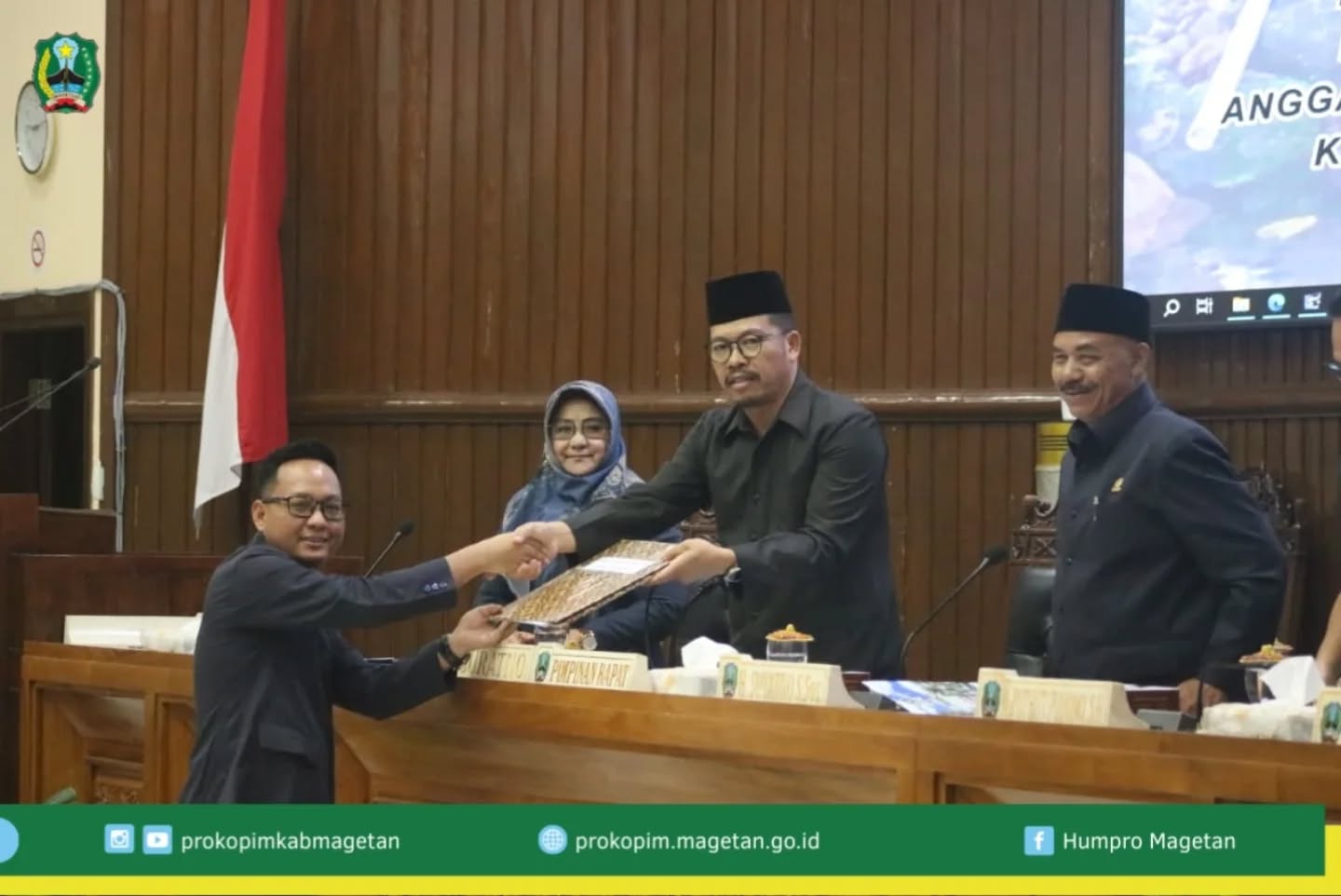 Bupati Magetan, Nanik Sumantri menghadiri kegiatan rapat paripurna DPRD Kabupaten Magetan dengan agenda acara Penyampaian Pandangan Umum Fraksi DPRD terhadap Rancangan Peraturan Daerah APBD T.A. 2026.
