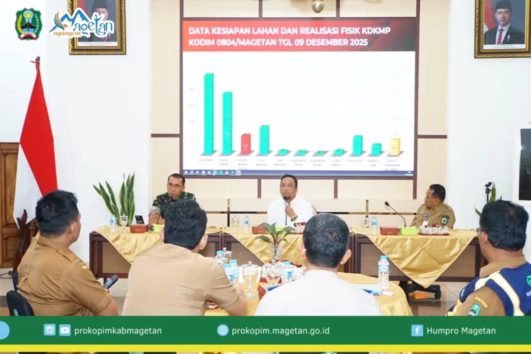 Pemerintah Kabupaten Magetan gelar Rapat Evaluasi Pembangunan Gerai Koperasi Desa Merah Putih (KDMP) pada hari Selasa (09/12) di Ruang Jamuan Pendopo Surya Graha Magetan.